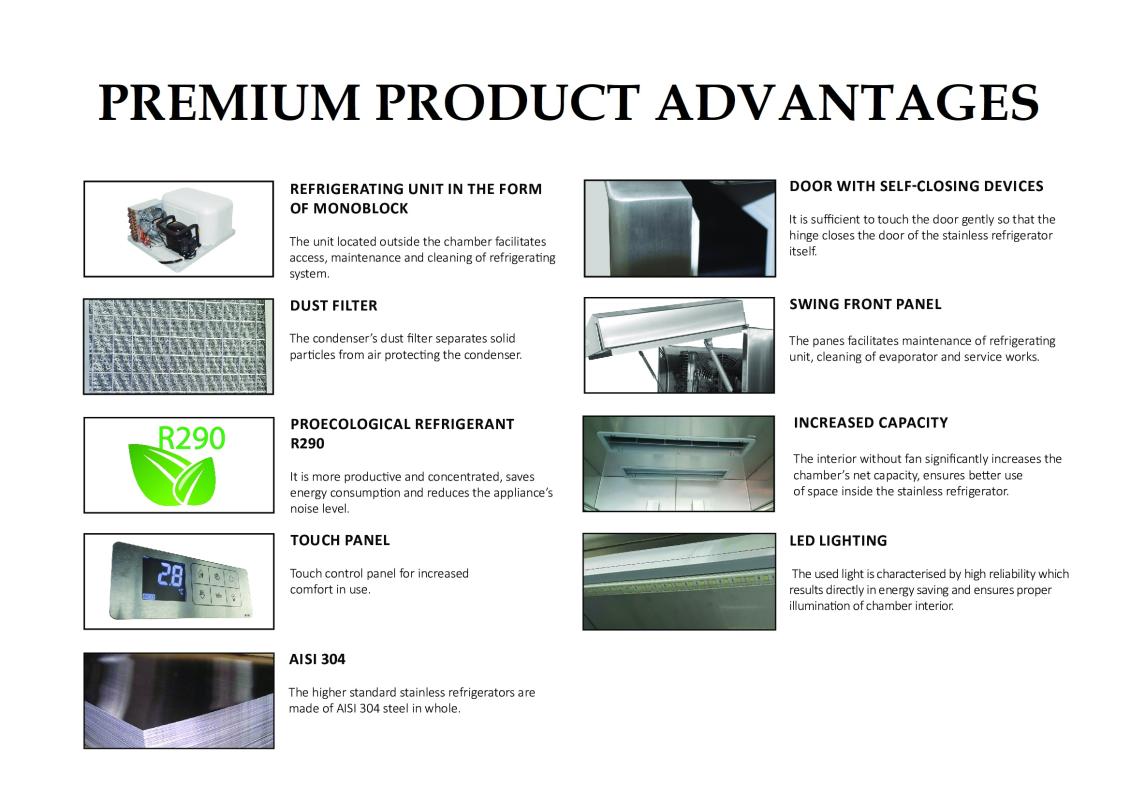 - increased capacity - the interior without fan significantly increases the chamber’s net capacity, ensures better use of space inside the stainless refrigerator