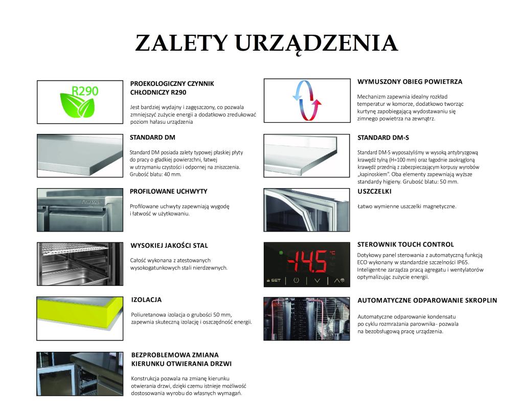 - drzwi w stołach chłodniczych Dora Metal mają zamontowany standardowo samodomykacz