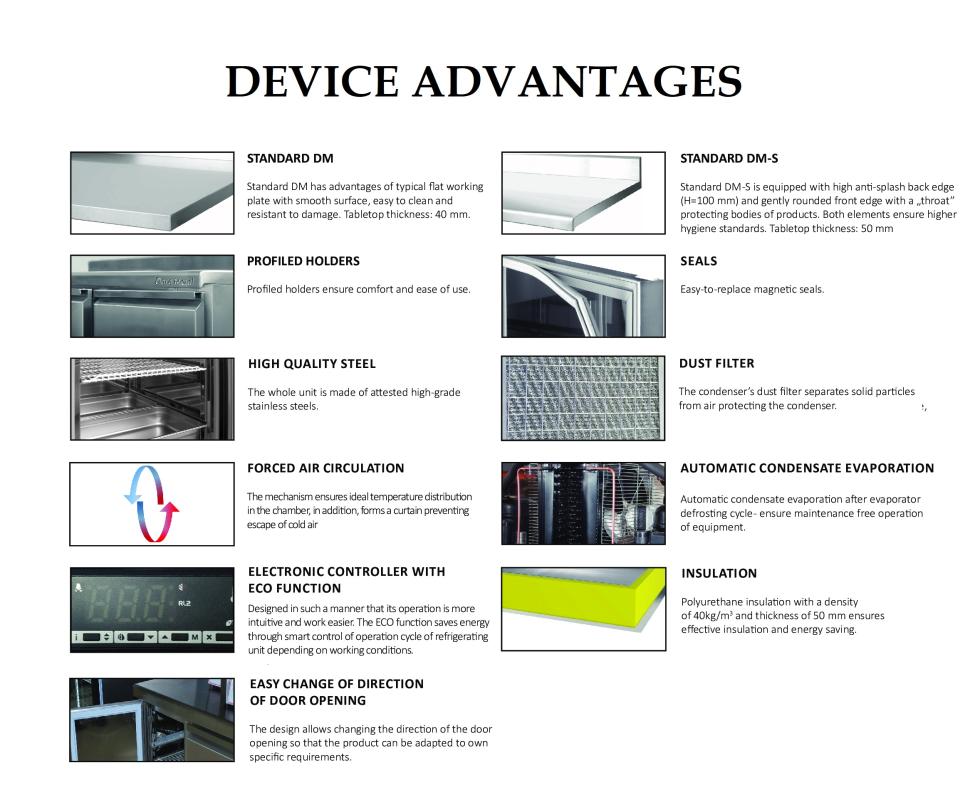 The undercounter refrigerators and freezers act as handy storage, provide quick access to stocks of refrigerated or frozen products. An additional asset of the undercounter refrigerators and freezers is the tabletop that acts as working surface.