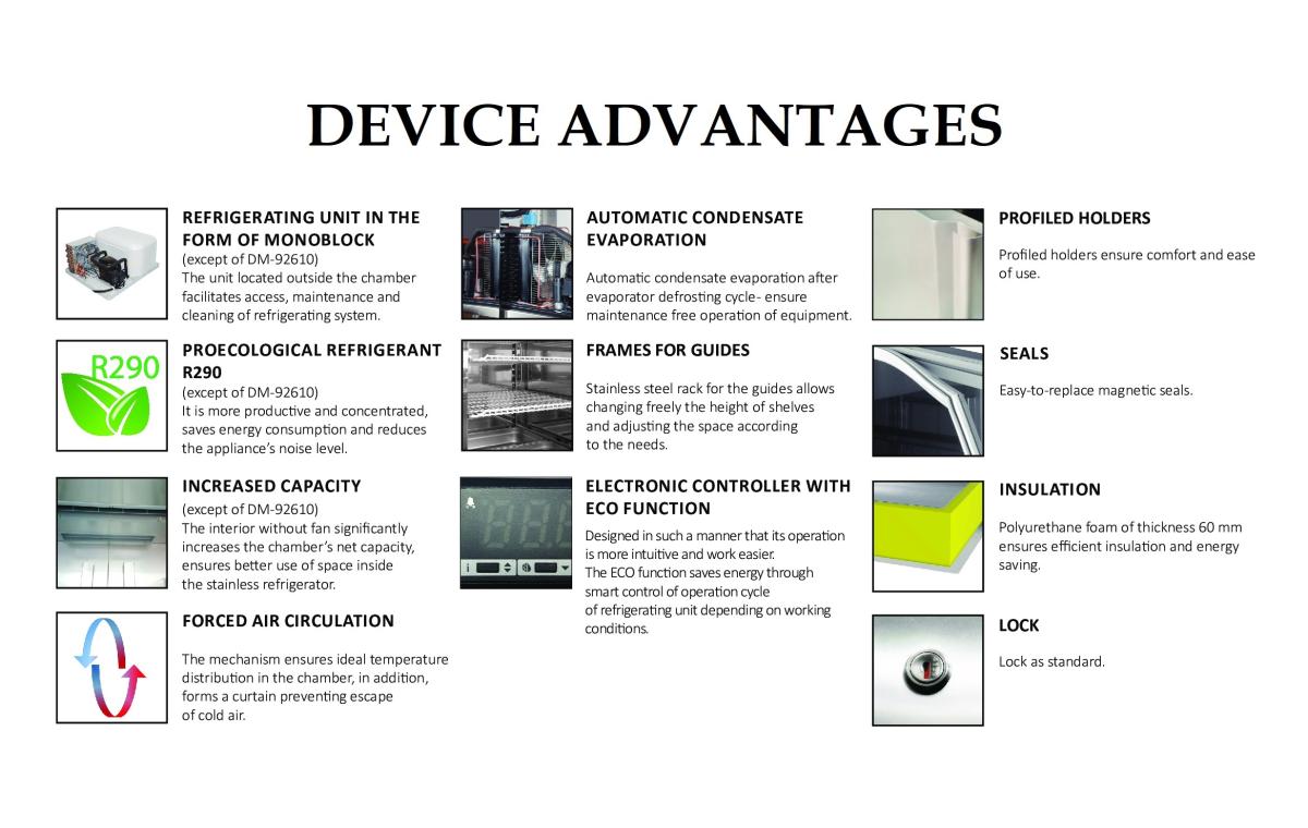 - proecological refrigerant R290 - It is more productive and concentrated, saves energy consumption and reduces the appliance’s noise level